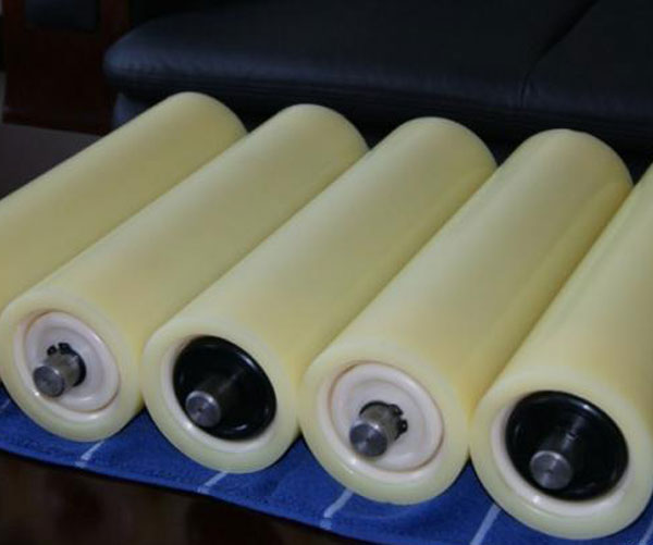 缓冲托辊:安装在落料点,吸收物料冲击。尼龙的弹性使其非常适合做缓冲托辊的辊体或套圈。